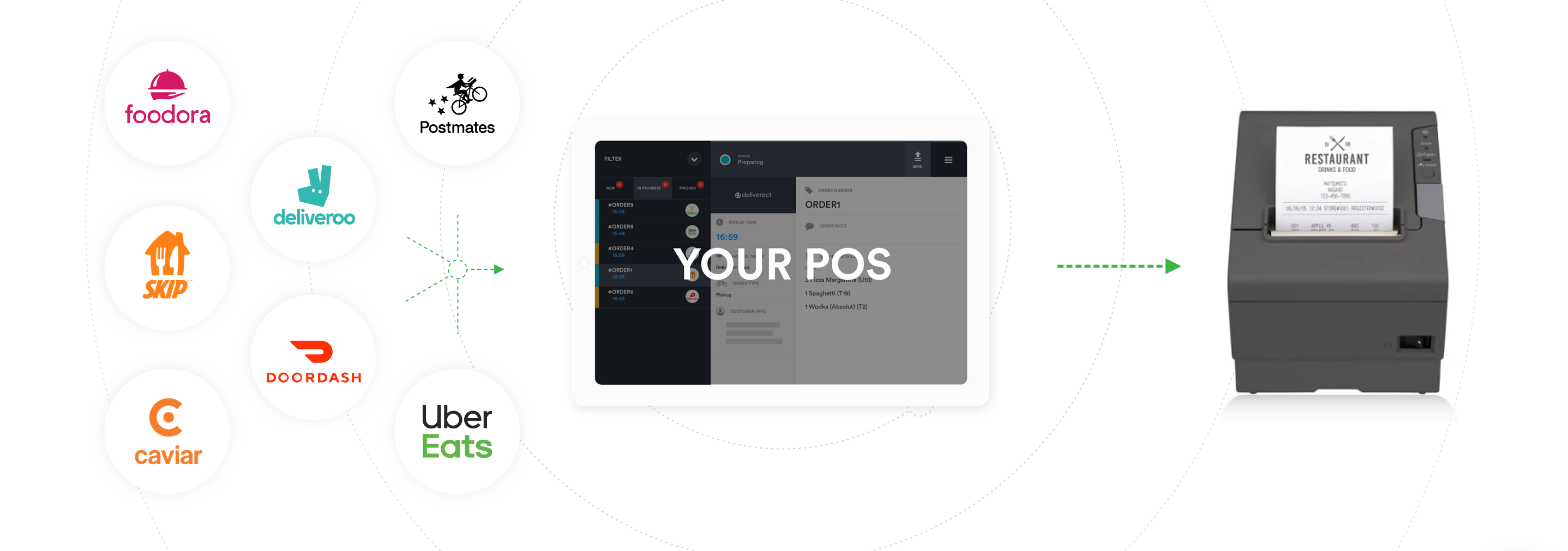 Deliverect connects Uber Eats, Doordash, SkipTheDishes and more delivery companies directly to restaurants’ POS system, automating the online order process. Menus are managed centrally, and orders are sent directly to your point-of-sale system and printed in the kitchen with a standardised layout. Delivery management has never been easier!